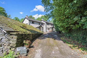 If travelling from the South, you will need to drive around half of the one-way system first and ensure you turn right beside Boots the Chemist to stay on the one-way system heading back around towards Windermere (not out towards Keswick). Once you spot The Ambleside Saluation Hotel turn into the narrow lane then turn left going uphill, signposted “To the waterfalls”. This is Stock Ghyll Lane. Go up Stock Ghyll Lane for only 40 yards and branch off left onto a narrow private lane. This lane runs past a small private car park and it ends after 50 yards at The Rookery.